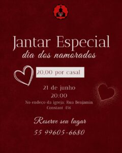Queremos honrar sua dedicação, agradecer pelo seu serviço e orar por sua vida. Sua participação foi fundamental, e este culto é também uma celebração do que Deus fez por meio de você.